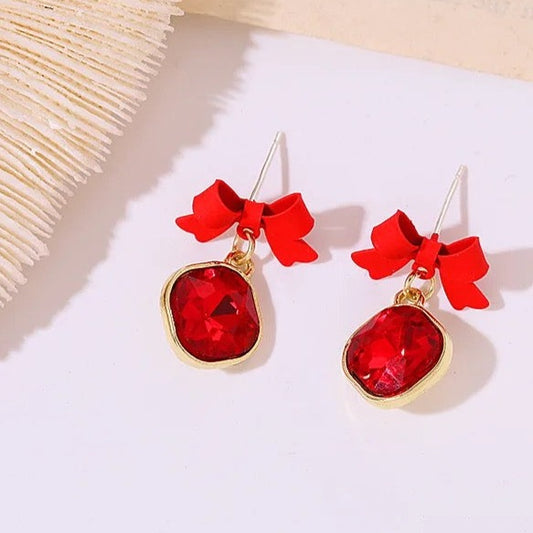 Red Crystal Bow Earring